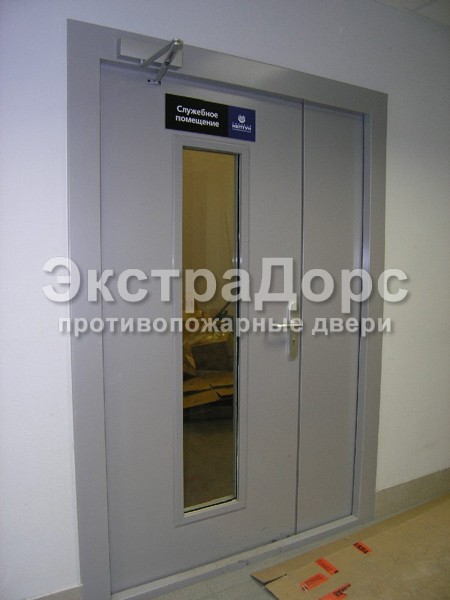 Двухстворчатая противопожарная дверь с прямоугольным стеклом в Чехове