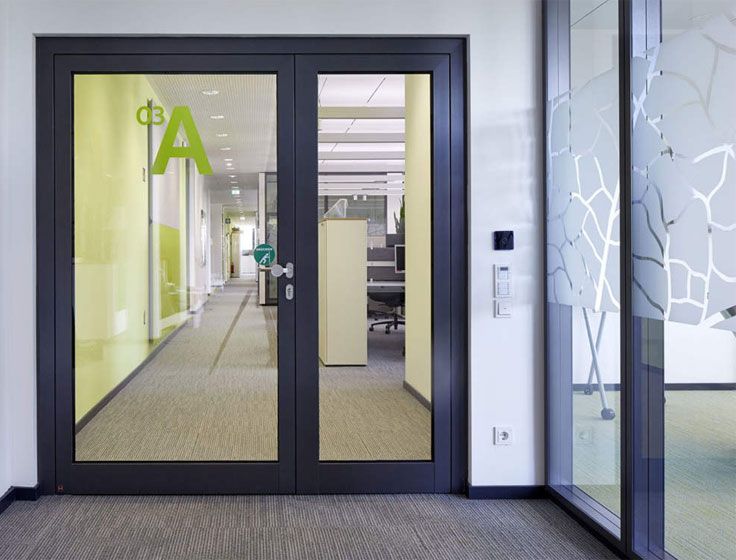 Противопожарная алюминиевая дверь со стеклом для офиса в Чехове