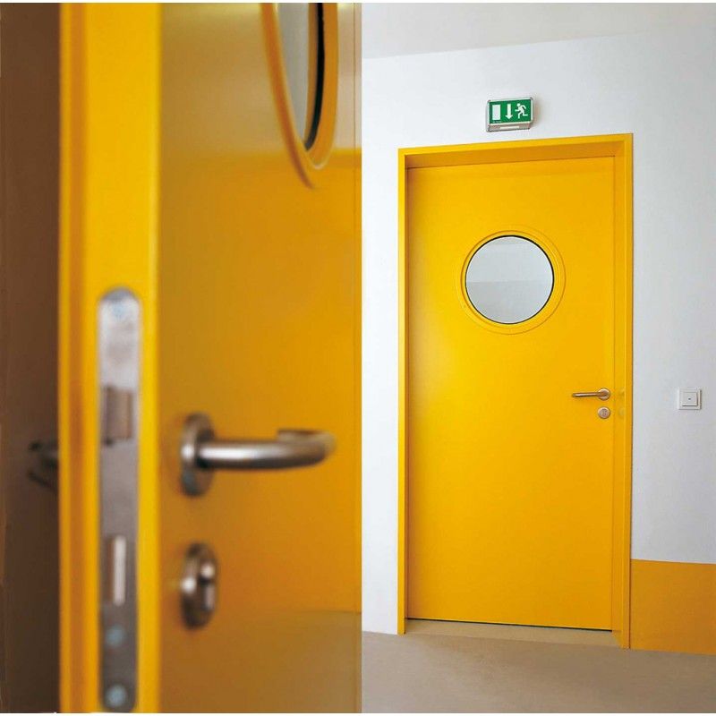 Противопожарная алюминиевая дверь со стеклом желтого цвета в Чехове