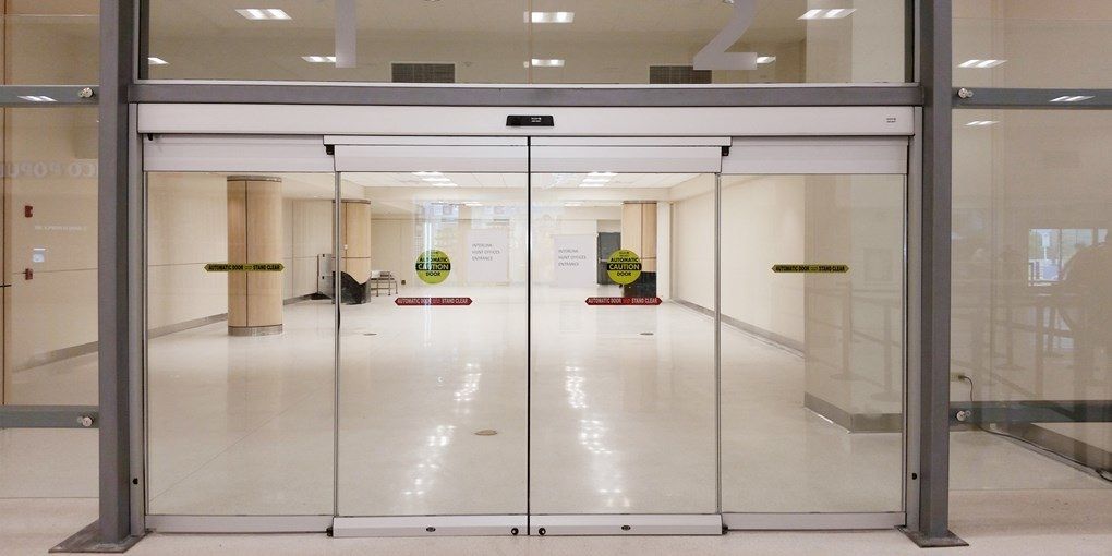 Противопожарная безрамная дверь со стеклом в бизнес центр в Чехове